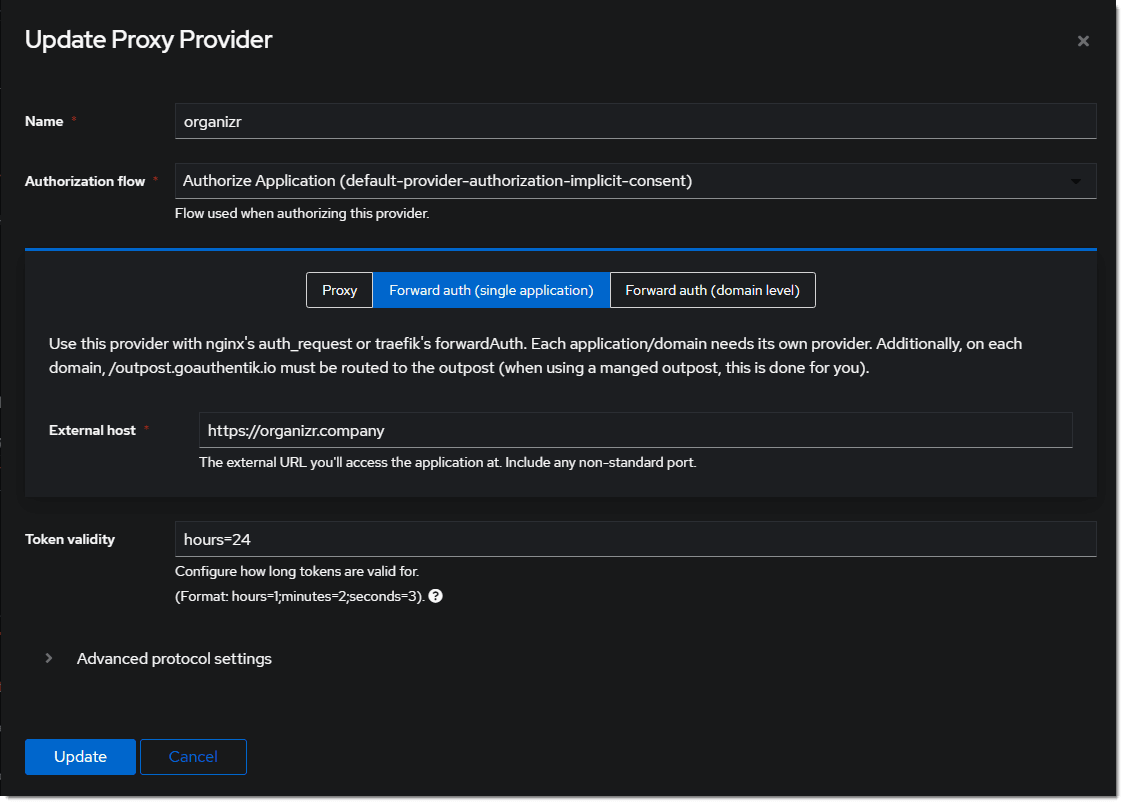 organizr.companyis the FQDN of the Service installation.authentik.companyis the FQDN of the authentik installation.