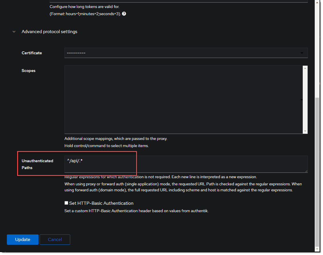 Optionally, add the regular expression to allow api calls in the advanced protocol settings.