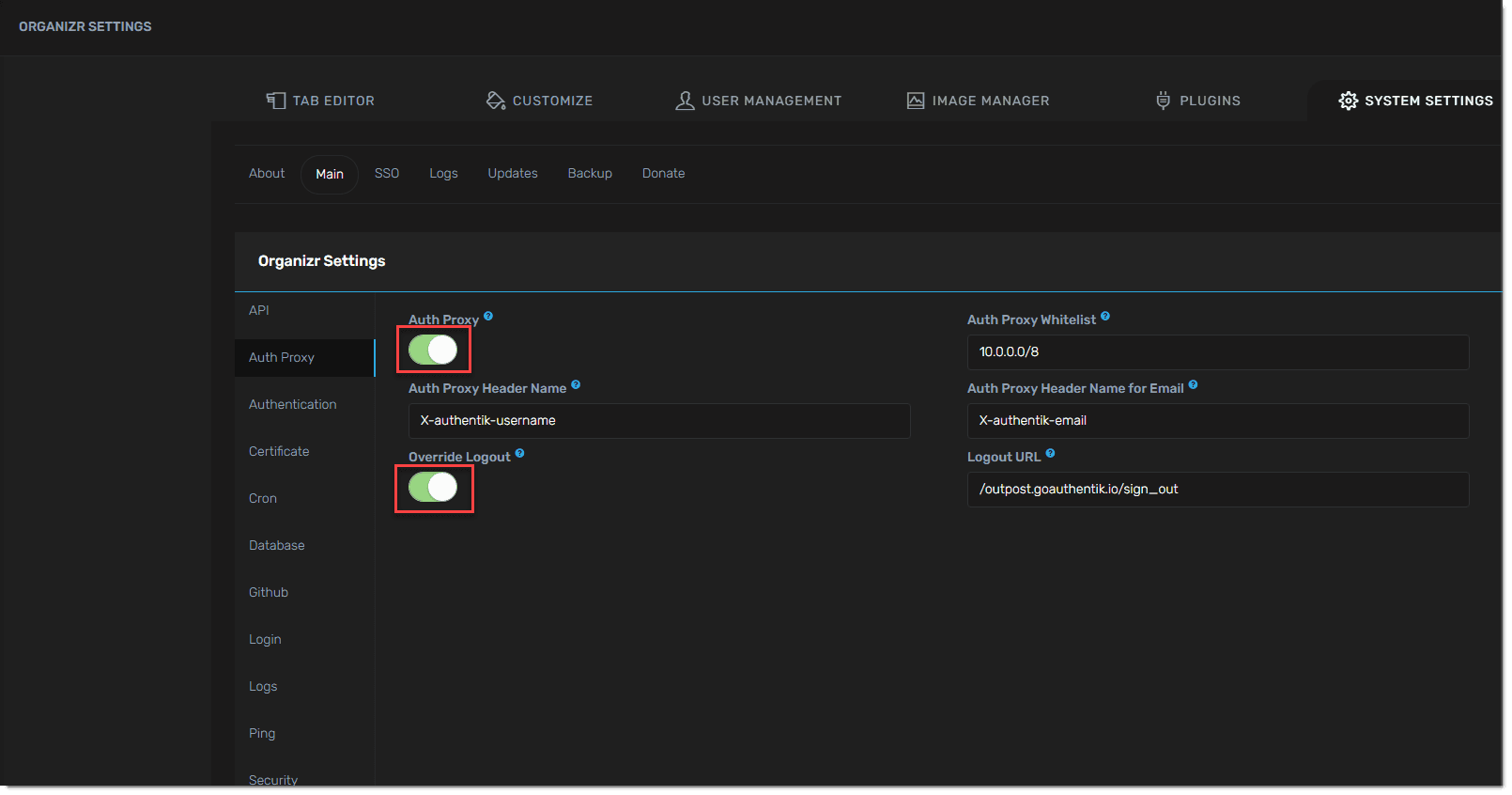 - Enable Auth Proxy in organizr system settings > main > Auth Proxy